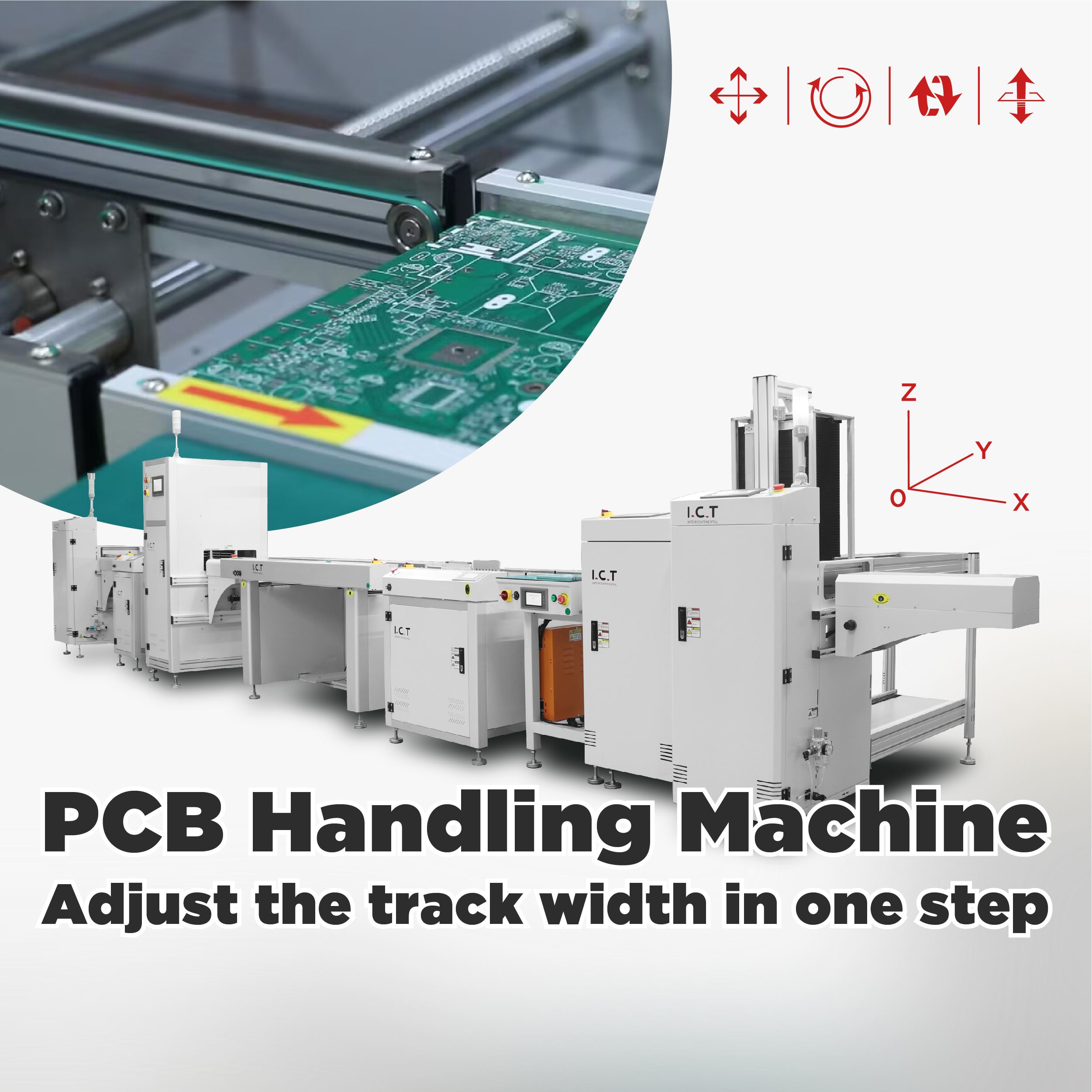 IKT tilbud PCB håndteringssystemer som transportører, buffer, læsser, losser, afstabler, trafikleder mv.