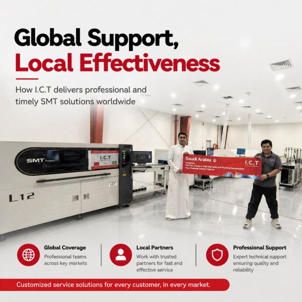 Hos ICT erkender vi, at levering af topkvalitets SMT-udstyr og teknisk support kun er begyndelsen. Nøglen til et succesfuldt partnerskab ligger i at tilbyde det rigtige serviceniveau - en, der er rettidig, professionel og tilpasset hver kundes unikke behov. Mens mange virksomheder fokuserer på at have lokal service, tager ICT det et skridt videre ved at sikre, at den service, vi leverer, ikke kun er tilgængelig, men også af højeste standard.